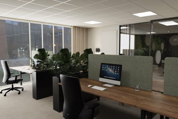 Met kantoorinrichting op maat sluit de ruimte precies aan op jullie manier van werken. We maken heldere indelingen, interieurontwerp en 3D-renders, zodat je vooraf ziet hoe het kantoor eruit kan komen te zien. Dit geeft duidelijkheid wanneer je een kantoorrenovatie plant of je kantoorruimte opnieuw wilt inrichten.