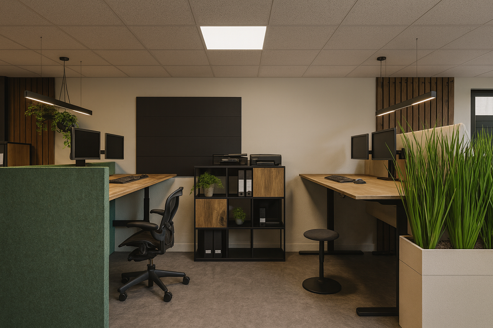 Van daaruit kijken we welke elementen de ruimte extra ondersteuning geven. Denk aan zachte stoffen voor akoestiek, kleuren die de werkplek warmer maken of subtiele decoratie die het kantoor persoonlijker maakt. Ook kunnen we helpen bij het kiezen van passende planten, wandafwerking of losse accessoires, zodat alles mooi op elkaar aansluit.